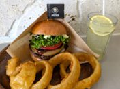 自治医大近く、大きな看板が目印の淡路島バーガー🚩 まずそのボリュームにびっくり!両手でしっかり押さえて豪快にガブリ! 肉厚玉ねぎの甘味と100%ビーフの旨味が広がって、もう最高です! オニオンリングはジューシー玉ねぎにザクザク衣で大満足❤ 甘味すっきり島レモンソーダ―と一緒にぜひご堪能ください♪