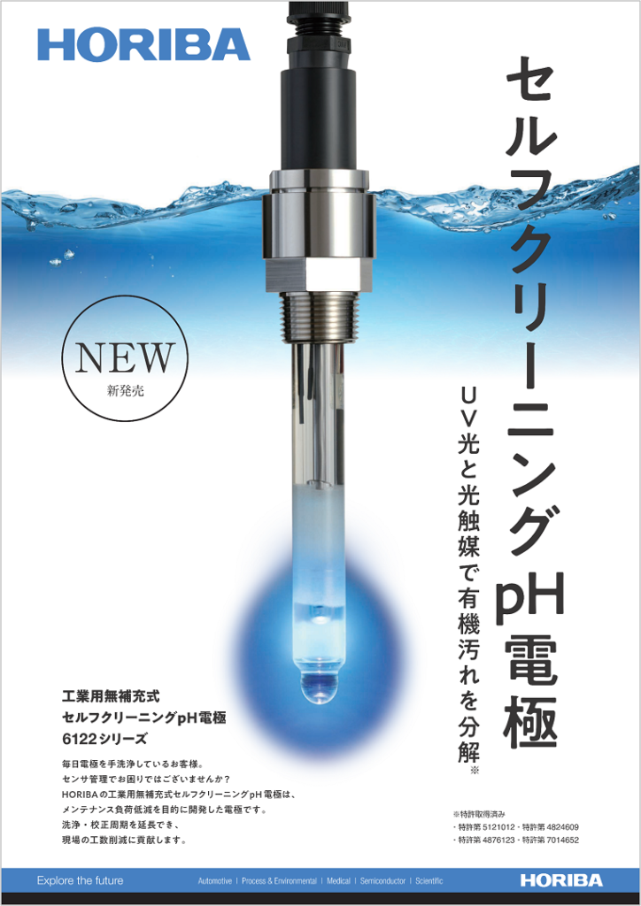 株式会社堀場アドバンスドテクノの、工業用無補充式セルフクリーニングpH電極「6122シリーズ」をご紹介します。