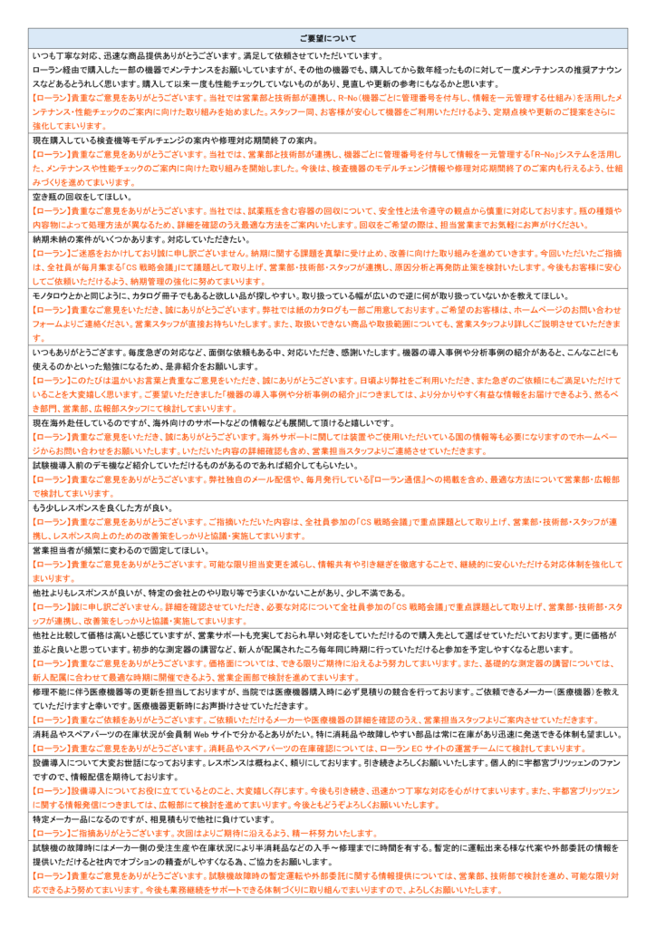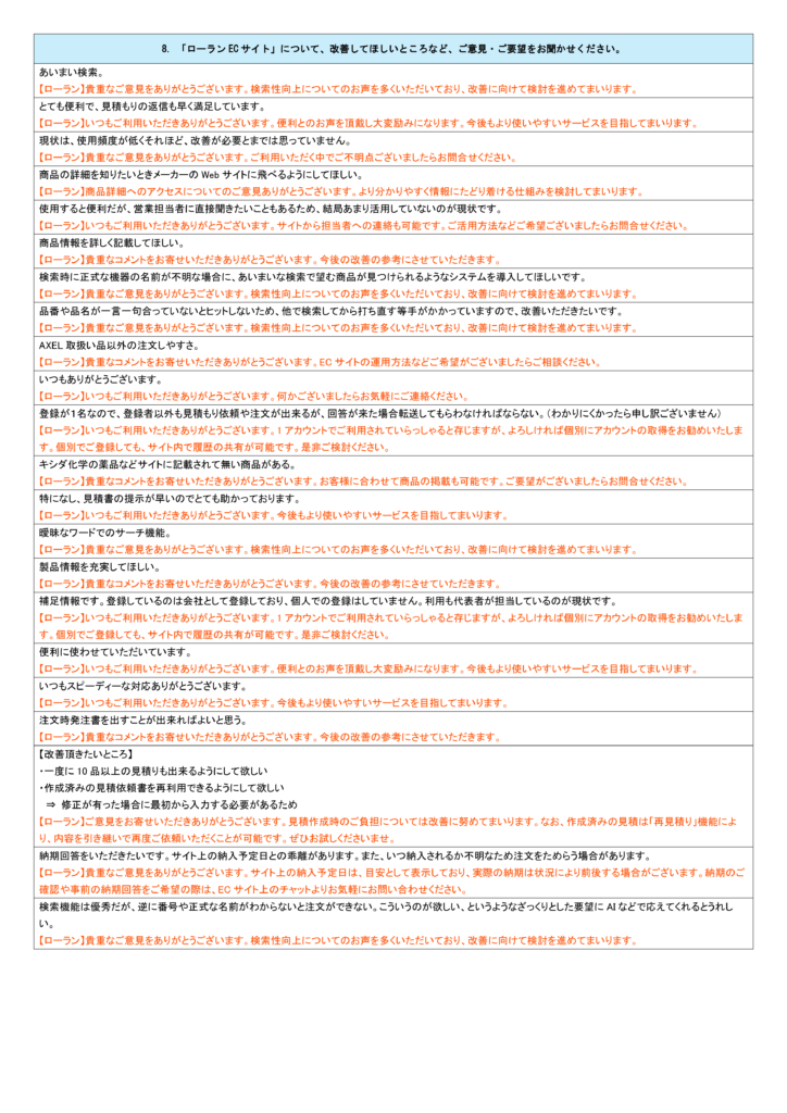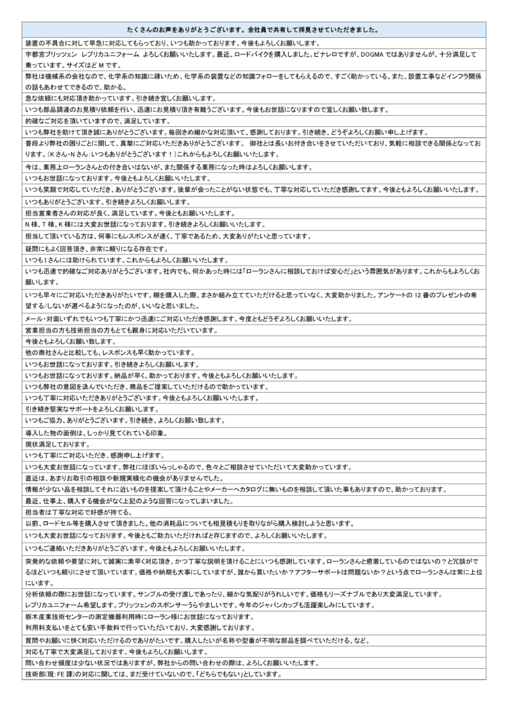 ご回答いただきありがとうございました。結果を受け止めよりよいサービスをご提供できるよう社員一同努めてまいります。今後とも変わらずご愛顧いただけますと幸いです。