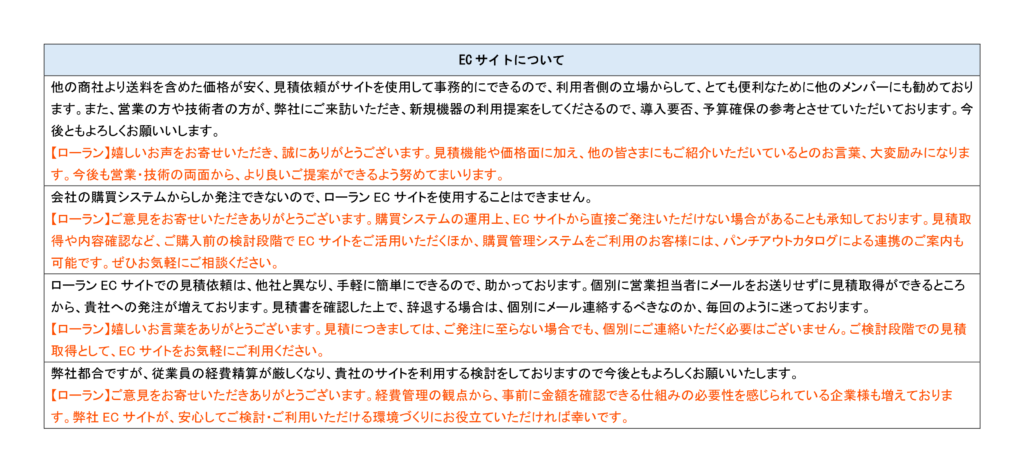 ご回答いただきありがとうございました。ローランでは、WEB上で商品購入や見積取得ができる独自サイトのほか、オレンジコマース等お客様にあわせてECサイトのご紹介をしております。ぜひお気軽にご相談ください。
