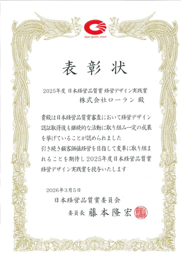 この度、2025年度 日本経営品質賞 経営デザイン実践賞 の受賞が決定いたしました。
