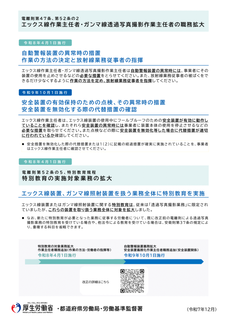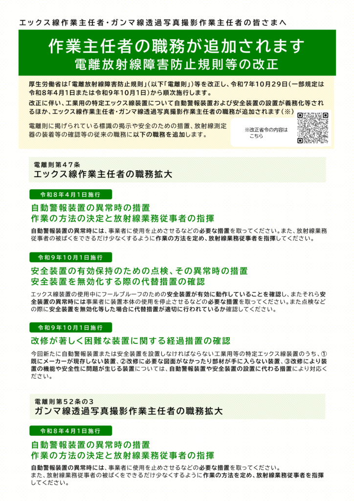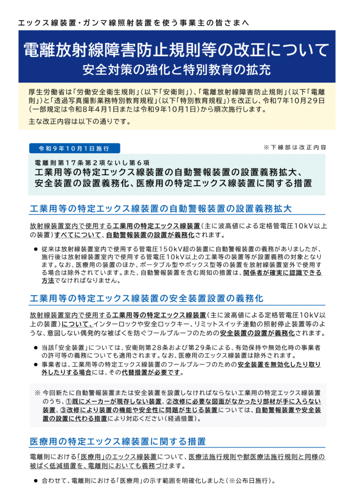 電離放射線障害防止規則等の改正 R7/10/29より順次施行