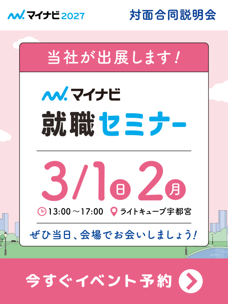 2026年3月2日に宇都宮市で開催される、マイナビ就職セミナーに当社が出展いたします。