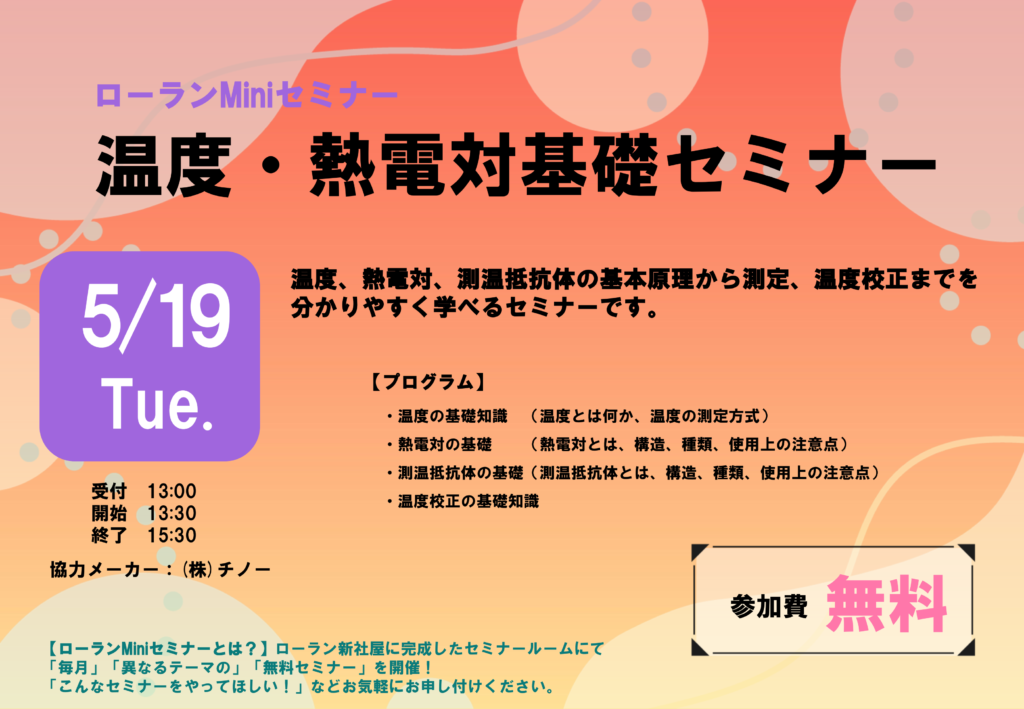 ご好評いただいているローランMiniセミナー「温度・熱電対基礎セミナー」のお申込み受付を開始いたしました。