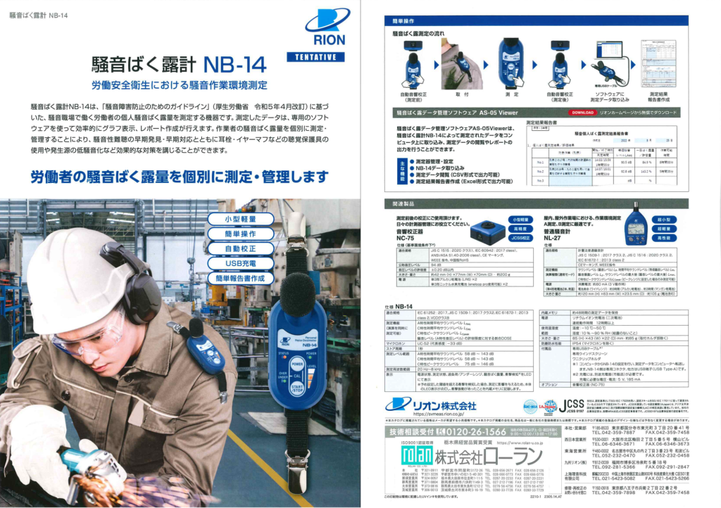 8月発売予定 労働安全衛生における騒音作業環境測定 騒音ばく露計「NB-14」 リオン株式会社